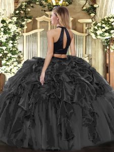 Low Price Turquoise Sleeveless Floor Length Beading and Ruffles Backless Sweet 16 Dress