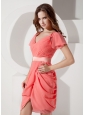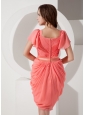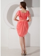 Low Price Watermelon Column V-neck Prom Dress Chiffon Belt Knee-length