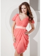Home >  Prom Dresses >  Short Prom Dresses > Low Price Watermelon Column V-neck Prom Dress Chiffon Belt Knee-length