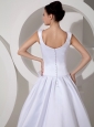 Elegant floor length dress in a flattering A-line silhouette with princess seams. The square neckline will accentuate your sexy neck. The pure bodice will fresh the air with smooth lines and a pleated bowknot on waist area. A-line skirt embellished with folds is fully lined. The Cathering train and button closure in the back add interest and glamour. Simply stunning!