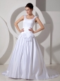 Home >  Wedding Dresses >  Affordable Wedding Dresses > Low Price Wedding Dress A-line Scoop Court Train Satin Sash