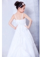 Home >  Flower Girl Dresses > Low Price White A-line Straps Appliques Flower Girl Dress Court Train Taffeta