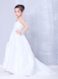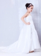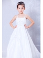 Low Price White A-line Straps Appliques Flower Girl Dress Court Train Taffeta