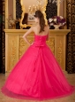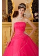 Low Prince Hot Pink Sweet 16 Dress Strapless Tulle Appliques A-line / Princess