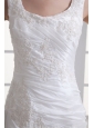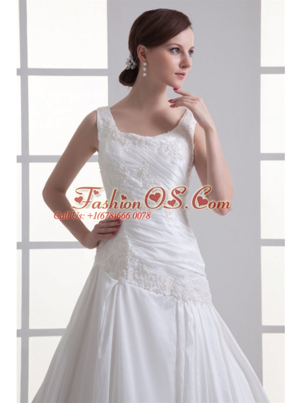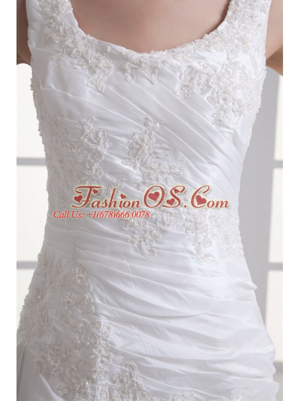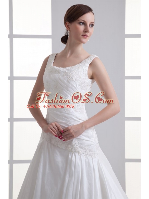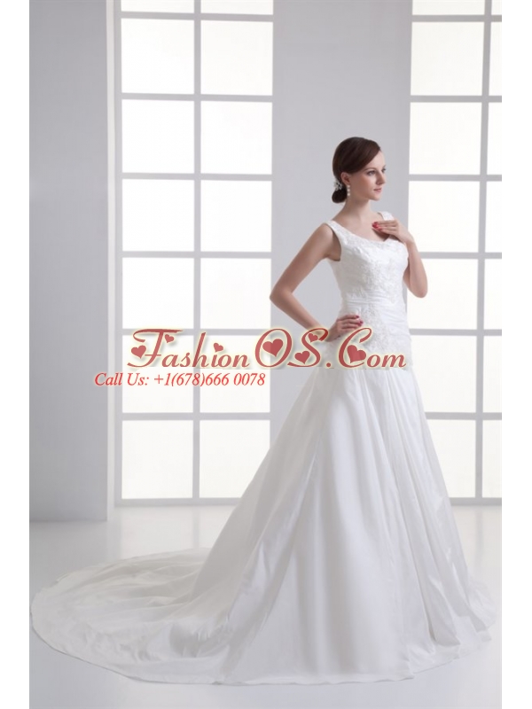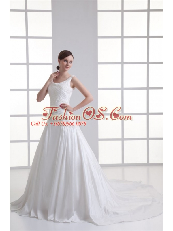 Luxurious A-line Scoop Chapel Train Wedding Dress with Appliques