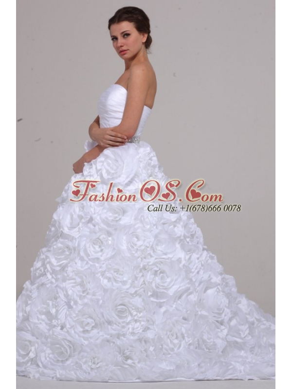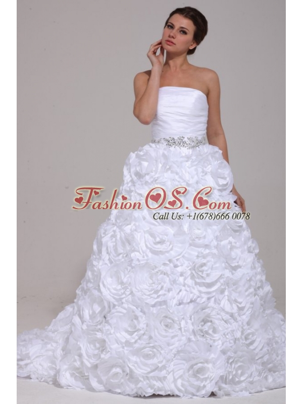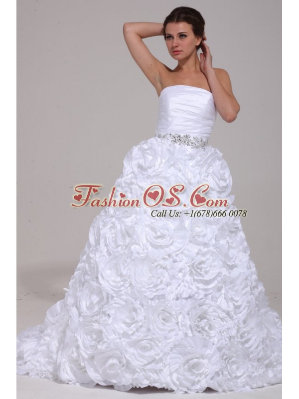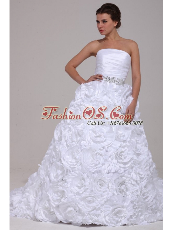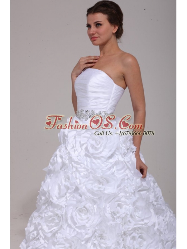 Luxurious A-Line Strapless Beading Taffeta 2014 Wedding Dress