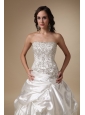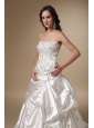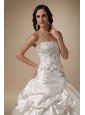 Luxurious A-line Strapless Chapel Train Taffeta Beading and Pick-ups Wedding Dress