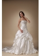 Home >  Wedding Dresses >  Elegant Wedding Dresses > Luxurious A-line Strapless Chapel Train Taffeta Beading and Pick-ups Wedding Dress