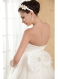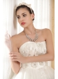 Luxurious A-line Strapless Floor-length Tulle and Taffeta Hand Made Flowers and Beading Wedding Dress