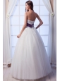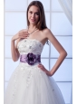 Luxurious A-line Strapless Floor-lengthTulle Beading and Hand Made Flowers Wedding Dress