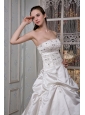 Luxurious A-line Strapless Wedding Dress Taffeta Appliques and Beading Court Train
