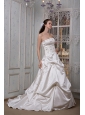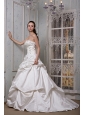 Home >  Wedding Dresses >  Elegant Wedding Dresses > Luxurious A-line Strapless Wedding Dress Taffeta Appliques and Beading Court Train
