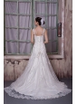 Luxurious A-line Straps Wedding Dress Taffeta and Lace Beading Court Train