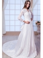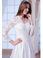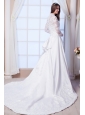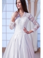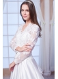 Home >  Wedding Dresses >  Elegant Wedding Dresses > Luxurious A-line V-neck Chapel Train Satin Lace and Appliques Wedding Dress