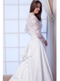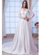 Luxurious A-line V-neck Chapel Train Satin Lace and Appliques Wedding Dress