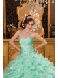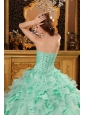 Luxurious Apple Green Quinceanera Dress Sweetheart Ruffles Organza And Taffeta Ball Gown