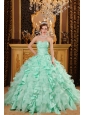 Luxurious Apple Green Quinceanera Dress Sweetheart Ruffles Organza And Taffeta  Ball Gown