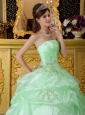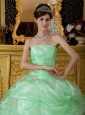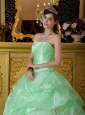 Home >  Quinceanera Dresses >  Sweet 16 Dresses > Luxurious Apple Green Sweet 16 Dress Strapless Organza Beading Ruch Ball Gown