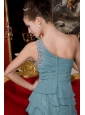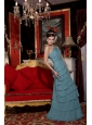 Home >  Evening Dresses > Luxurious Baby Blue Empire Prom / Evening Dress One Shoulder Chiffon Beading Brush Train