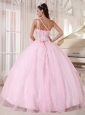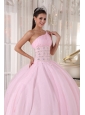 Home >  Quinceanera Dresses >  Sweet 16 Dresses > Luxurious Baby Pink Quinceanera Dress One Shoulder Organza Beading Ball Gown