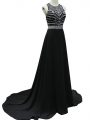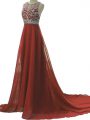 Luxurious Backless Formal Dresses Burgundy for Prom and Party with Beading Brush Train