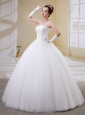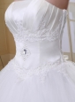 Luxurious Ball Gown Strapless Appliques Decorate Bust 2013 Wedding Dress With Tulle