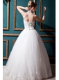 Elaborate on your formal-themed wedding with this stunning bridal style. The corset bodice has a strapless straight neckline pebbled with dazzling crystalline jewels. Jewel-accented, lines emphasize the slender midriff, and a jewel-embellished band defines the dropped waist. The design on the middle bust area is a big attractive point.It is linked by thickly dotted lines. Contrasting appliqued accents adorn the whole skirt and bodice.To have a dreamful wedding,you are sure to choose this style!