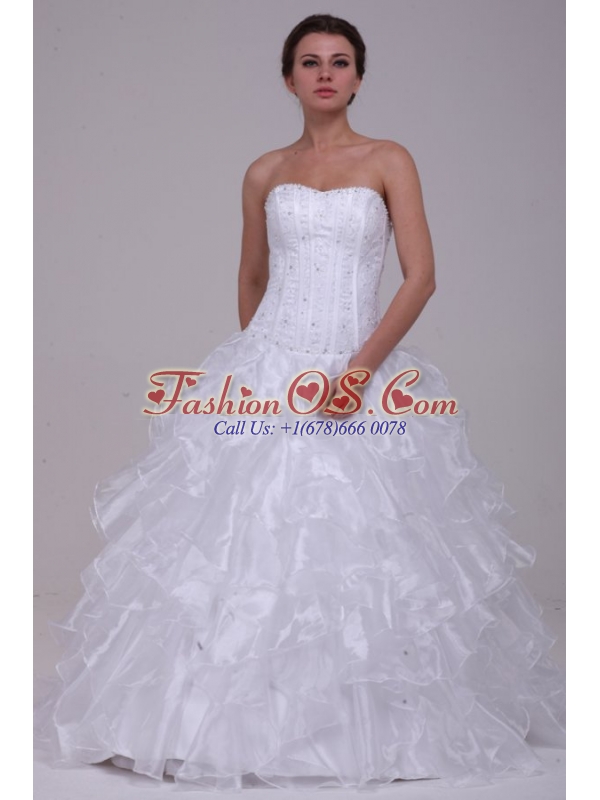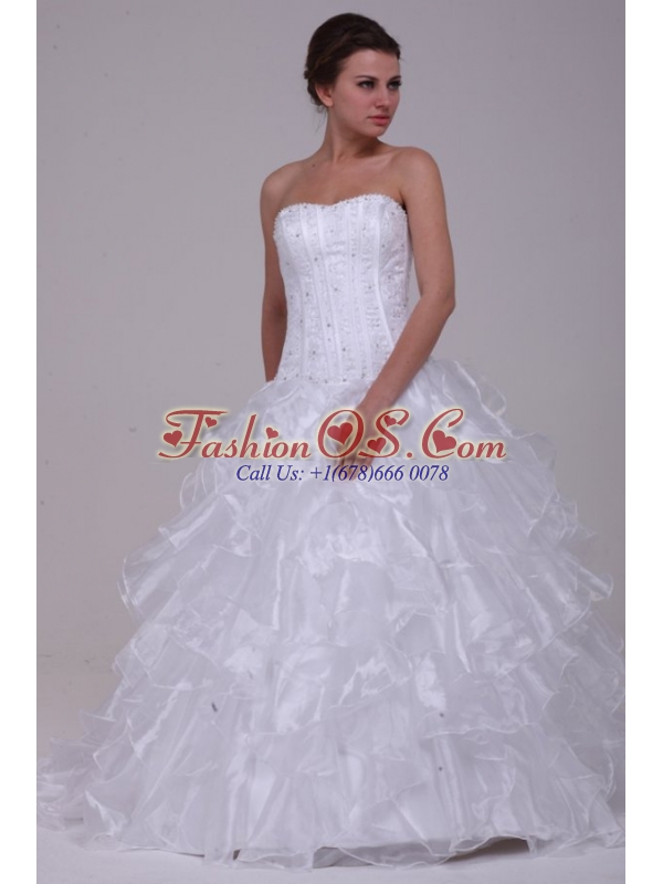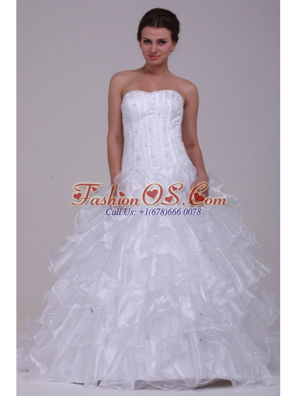 Luxurious Ball Gown Sweetheart Floor-length Beading Organza Wedding Dress