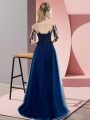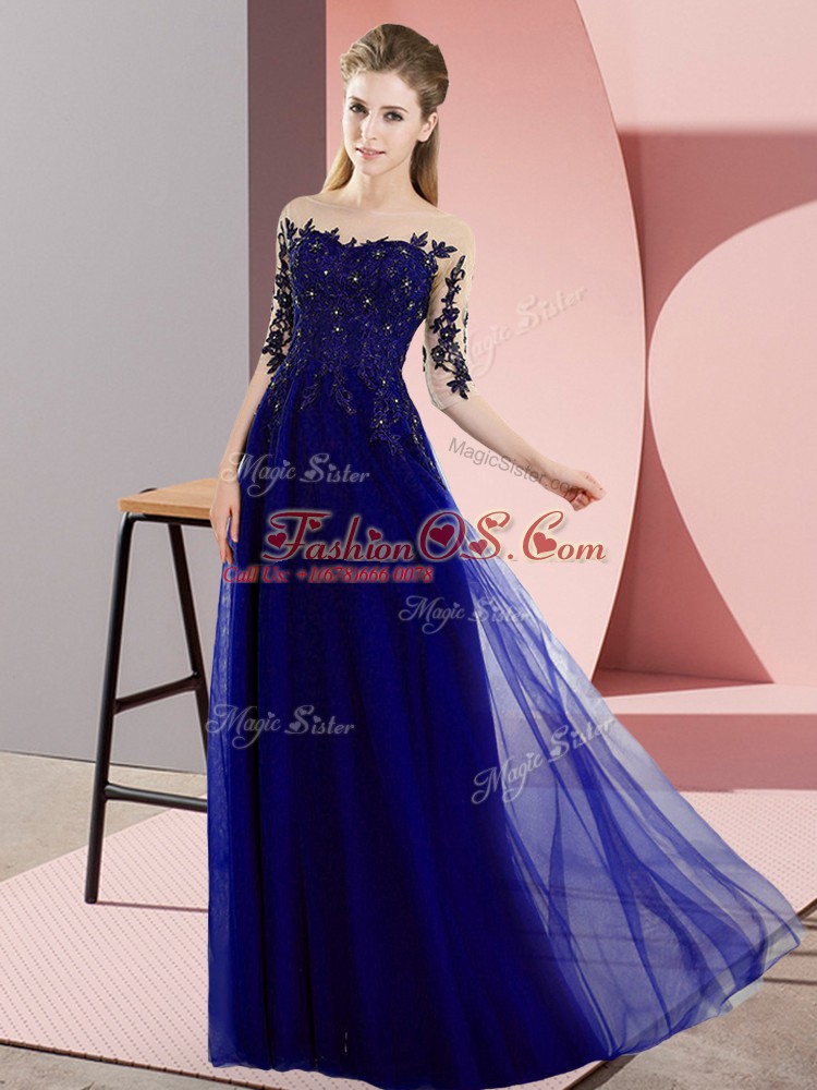 Luxurious Bateau Half Sleeves Court Dresses for Sweet 16 Floor Length Beading and Lace Blue Chiffon