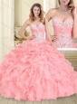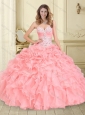 Luxurious Beaded and Ruffled Big Puffy Sweet 16 Dress in Watermelon Red