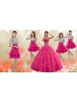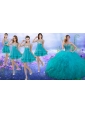 Home >  Quinceanera Dresses >  Quinceaneara Package > Luxurious Beaded and Ruffled Quinceanera Dress and Sweet Spaghetti Straps Teal Mini Quinceanera Dress and Discount Sequined Short Dama Dresses