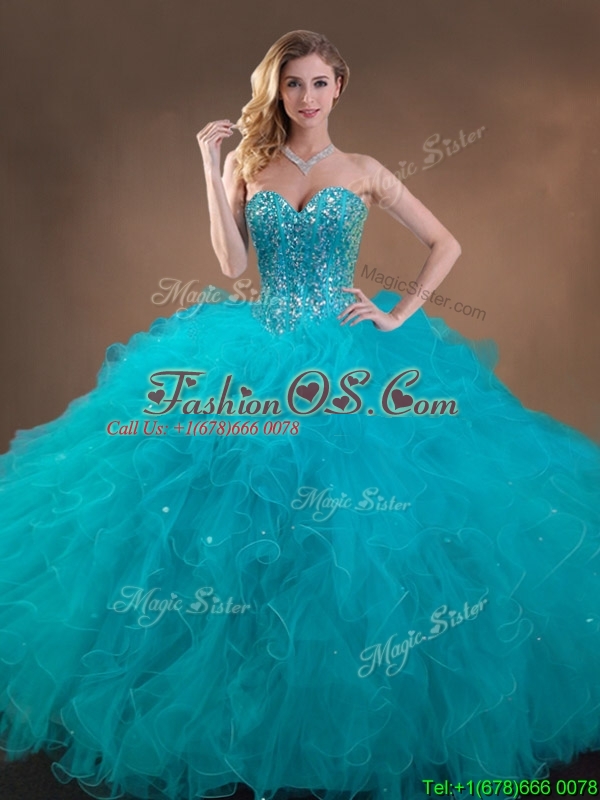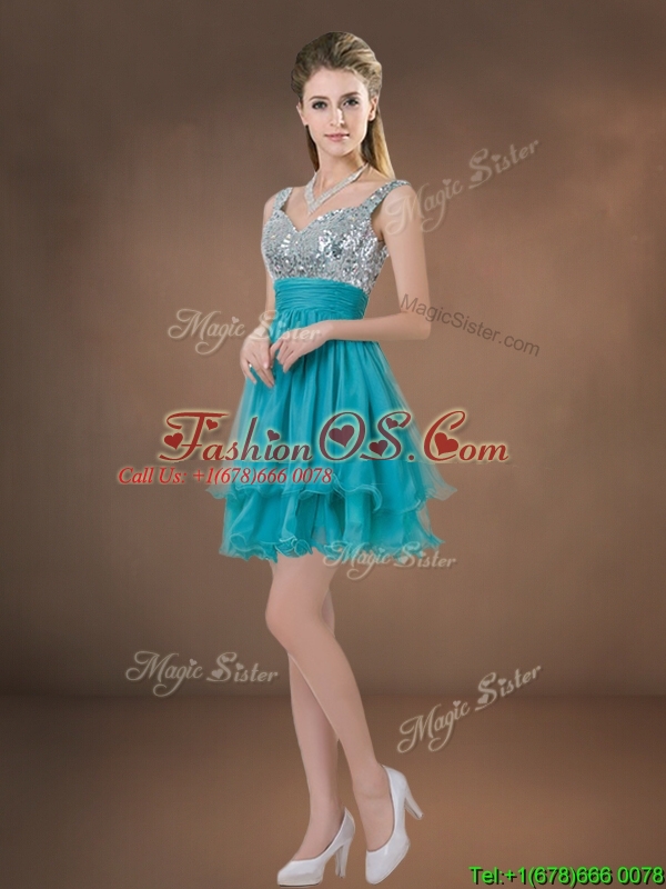 Luxurious Beaded and Ruffled Quinceanera Dress and Sweet Spaghetti Straps Teal Mini Quinceanera Dress and Discount Sequined Short Dama Dresses