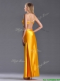 Luxurious Beaded Decorated Straps Criss Cross Prom Dress in Gold