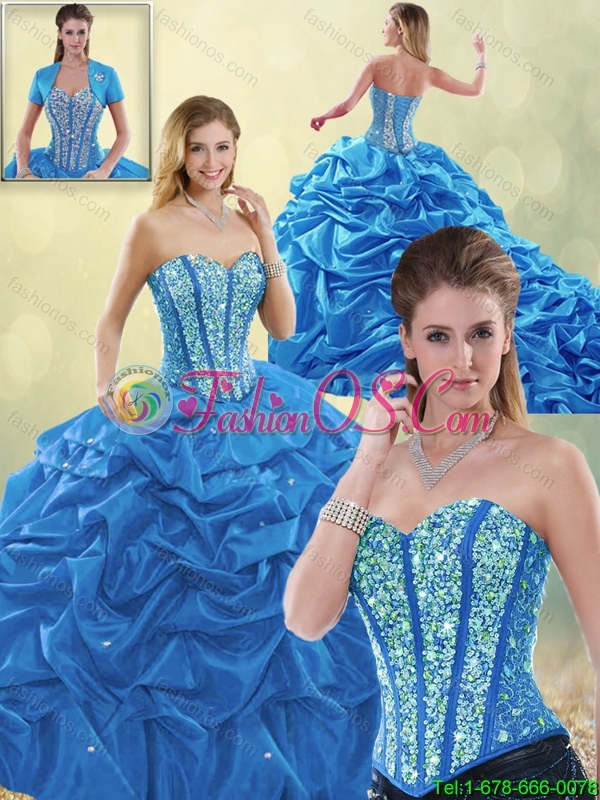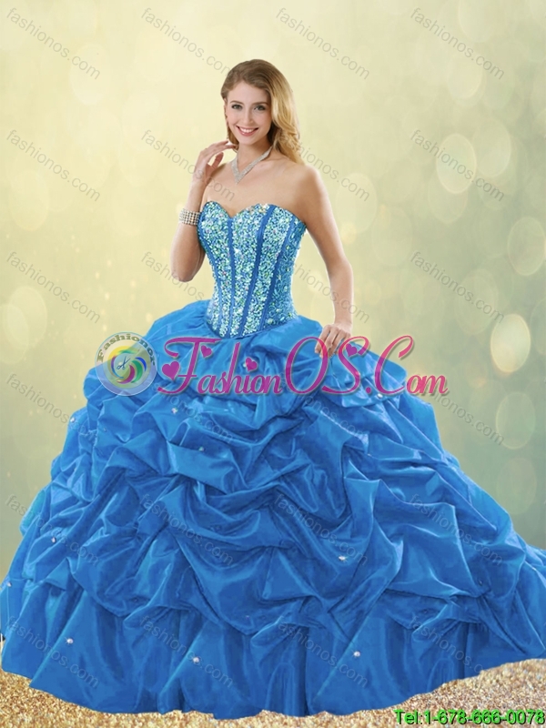 Luxurious Beading Blue Quinceanera Gowns with Sweetheart