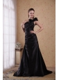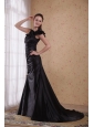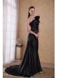 Luxurious black A-line / Princess One Shoulder Court Train Prom / Celebrity Dress