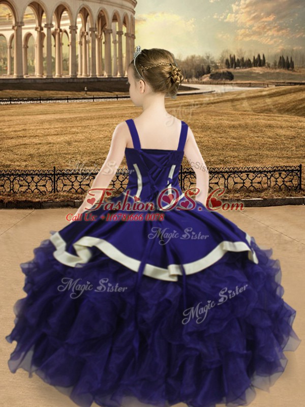 Home >  Special Occasion Dresses >  Pretty Little Girl Pageant Dresses > Luxurious Blue Sleeveless Beading and Ruffles Floor Length Kids Pageant Dress
