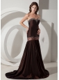 Luxurious Brown Mermaid / Trumpet Sweetheart Brush / Sweep Taffeta Beading Prom Dress