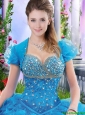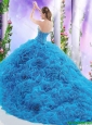 Home >  Quinceanera Dresses >  Cute Quinceanera Dresses > Luxurious Brush Train Blue Sweet 16 Dresses with Beading