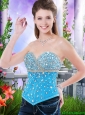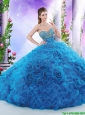 Luxurious Brush Train Blue Sweet 16 Dresses with Beading