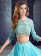 Home >  Prom Dresses >  Christmas Party Dresses > Luxurious Brush Train See Through Prom Dress with Lace and Beading