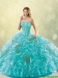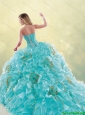 Luxurious Brush Train Sweetheart Detachable Quinceanera Dresses in Aqua Blue