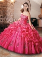 Luxurious Bubble and Applique Princesita Quinceanera Dresses in Coral Red