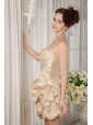 Luxurious Champagne A-line / Princess Strapless Cocktail Dress Taffeta Beading Mini-length