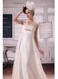 Dramatic touches will have heads turning the moment you arrive in this wedding gown dress. This luxurious wedding gown dress features a straightline neckline and a striking embellishment on the empire waist. The floor-length skirt fall into the floor creating a beautiful silhouette. The overlay is the sheer lace fabric form a open coat that adds some beauty to this wedding gown. The court train finishes all the look.