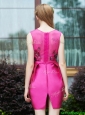 Luxurious Column Scoop Applique Hot Pink Mother of the Bride Dresses  in Satin