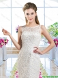 Luxurious Column Scoop Court Train Bridal Gowns with Lace