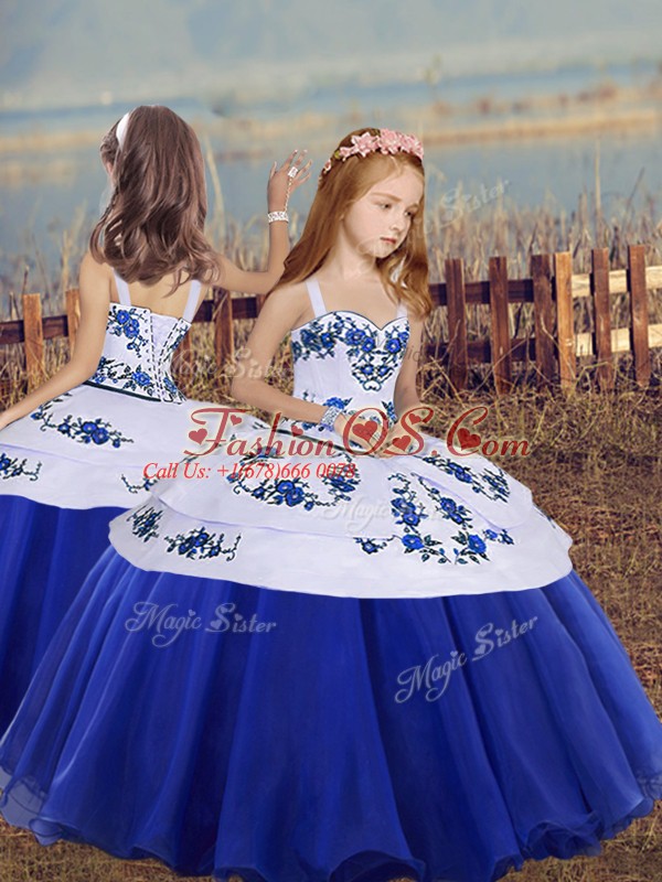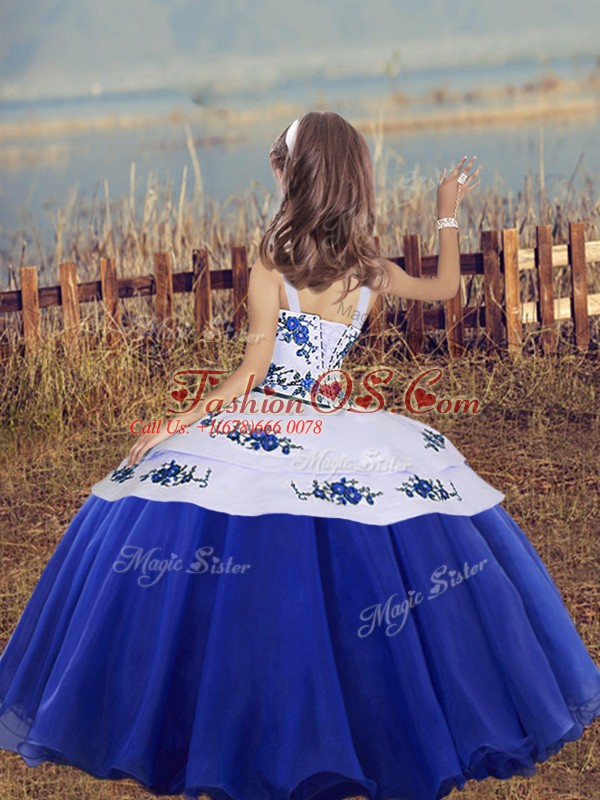 Home >  Special Occasion Dresses >  Beautiful Kids Pageant Dresses > Luxurious Embroidery Winning Pageant Gowns Royal Blue Lace Up Sleeveless Floor Length