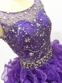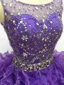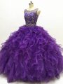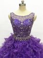 Luxurious Floor Length Purple Sweet 16 Dresses Organza Sleeveless Beading and Ruffles