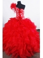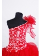 Luxurious Flower Girl Pageant Dress One Shoulder Neckline With Ruffled Layers and Embroidery Decorate Organza