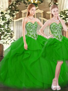 Luxurious Green Quinceanera Gowns Military Ball and Sweet 16 and Quinceanera with Beading and Ruffles Sweetheart Sleeveless Lace Up